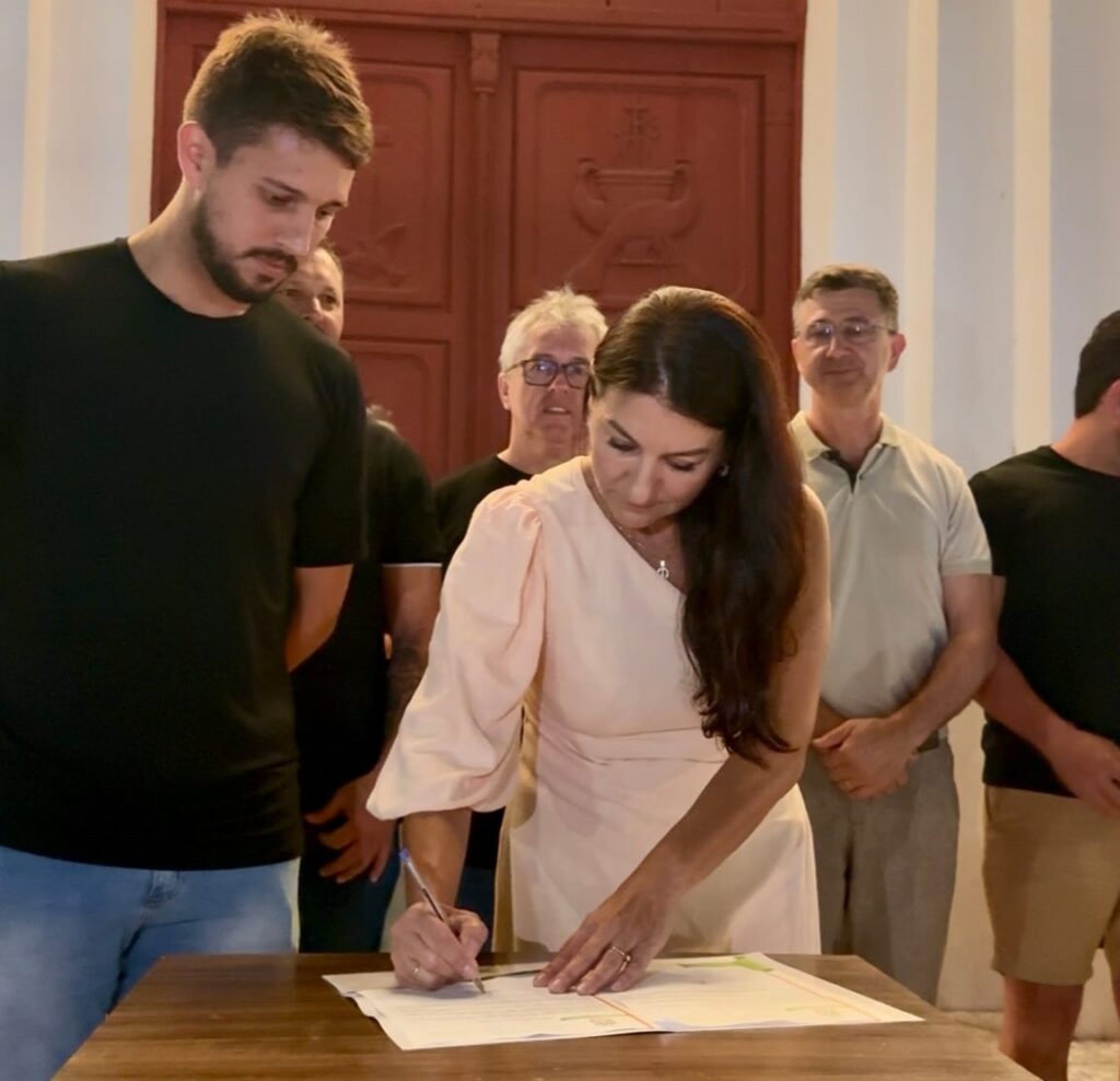 Sombrio deu um passo decisivo para a requalificação de um de seus espaços mais simbólicos. Na noite de terça-feira (23), a Prefeitura realizou a assinatura da ordem de serviço que autoriza o início das obras da nova Praça Arlindo Cunha, localizada na área atrás da Igreja Matriz Santo Antônio de Pádua, no centro da cidade.